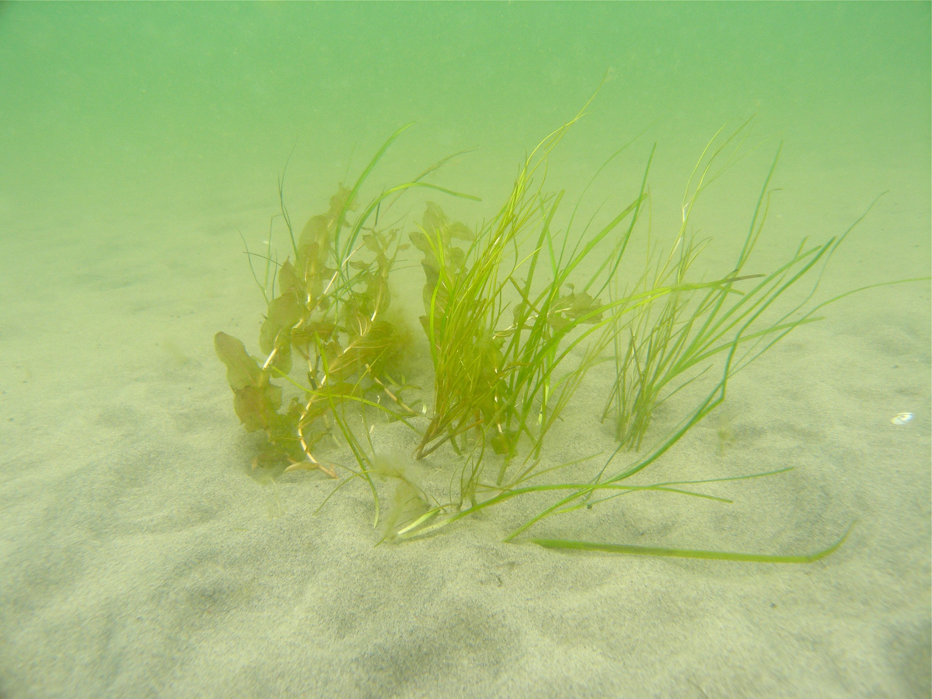 A seagrass field experiment in Finland. Photo shows a polyculture with three species. Photo credit: Camilla Gustafsson.