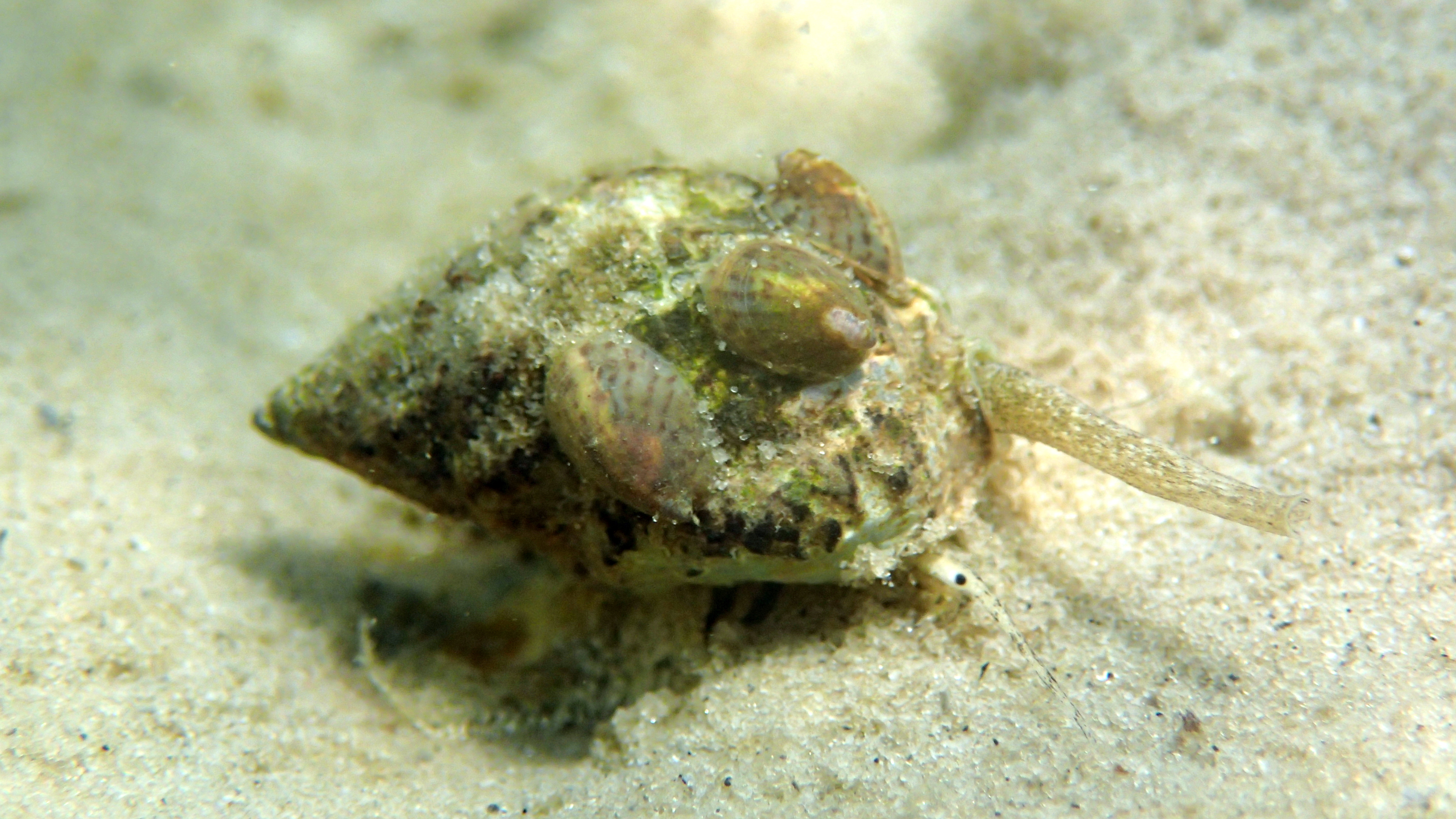 Hitching a ride Previous Next Published July 18, 2014 at 3968 × 2232 in Photos Tiny slipper shells (Crepidula fornicata) hitch a ride on an oyster drill (Urosalpnix cinerea)